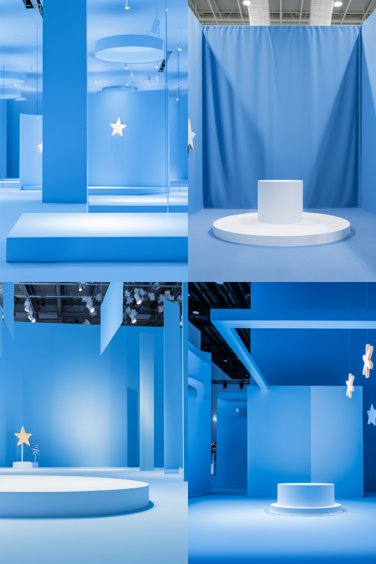 Midjourney Bot 更新时间:2023-09-01 10:44On the basis of this image, there are 7 empty exhibition booths with front view angles, and the overall color tone is blue with color number # 253aa3 --ar 2:3 --style raw --v 5.2