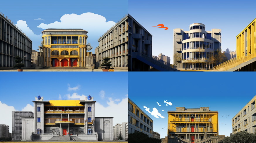 Midjourney Bot 更新时间:2023-09-01 10:43National style illustration, preserving architectural details, with an illustration style and a predominant blue and yellow color scheme. --ar 16:9 --v 5.2