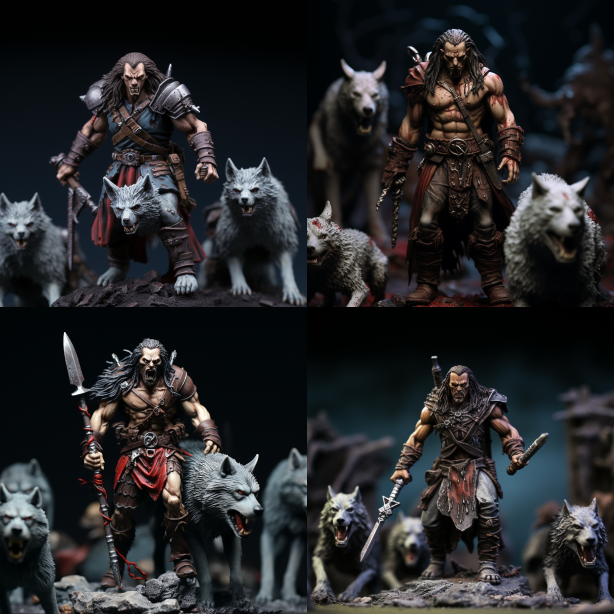 Midjourney Bot 更新时间:2023-09-01 10:53Half Orc Berserker, Bloodthirst, Lonely, Accompanied by Wolves --ar 1:1 --style raw --v 5.2
