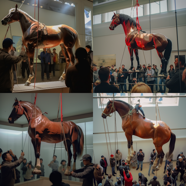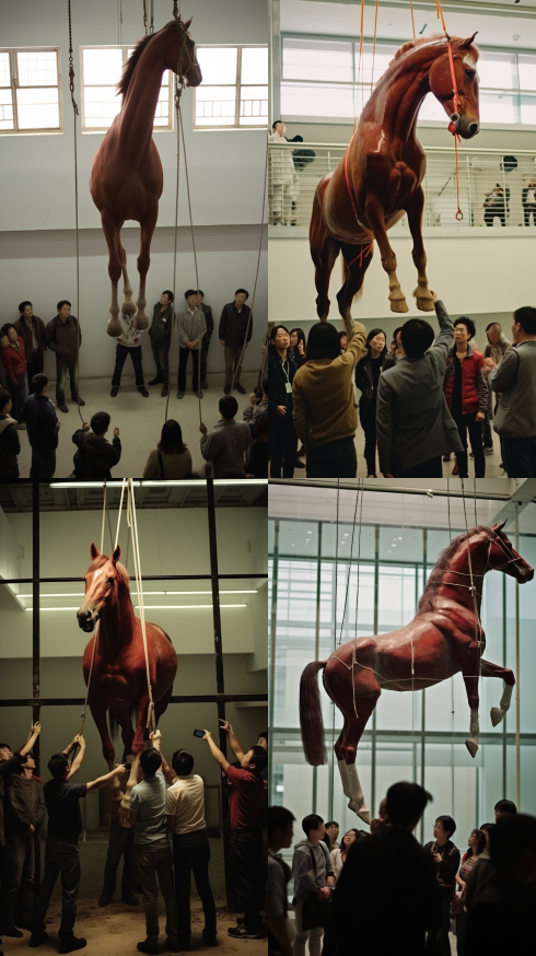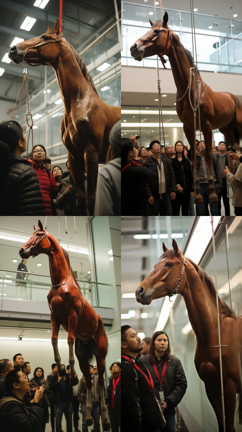 Midjourney Bot 更新时间:2023-09-01 10:02A group of people gathered in a museum to watch a jujube red horse being hung, photosensitive, documentary photography --ar 1:1 --style raw --v 5.2