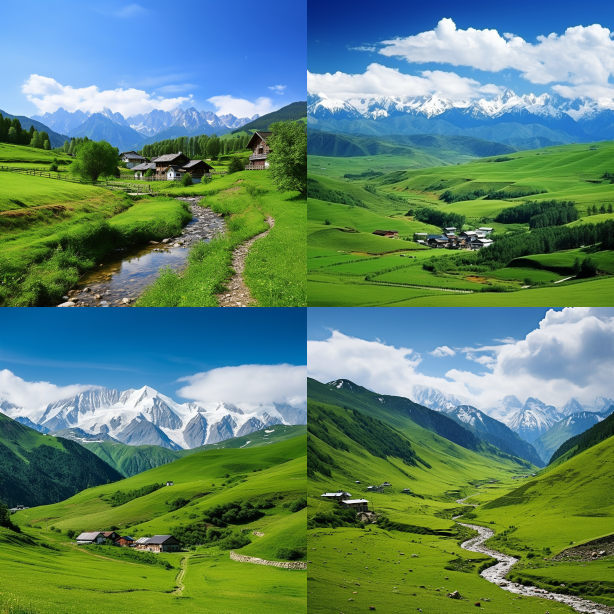 Midjourney Bot 更新时间:2023-09-01 10:06Snow Mountain, Green Grassland, Travel Houses, Countryside --ar 1:1 --style raw --v 5.2