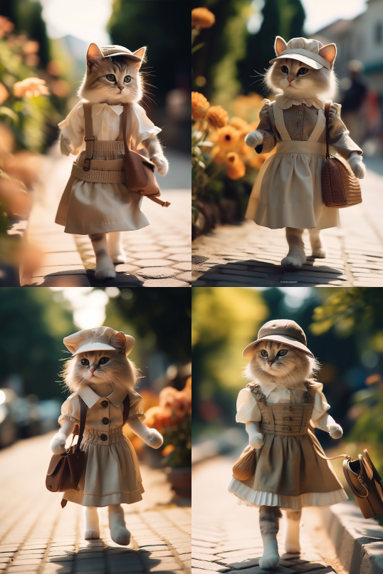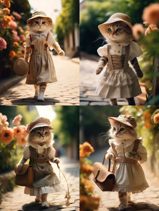 Midjourney Bot 更新时间:2023-09-01 10:01cute cat in summer clothing, in the style of karol bak, snapshot aesthetic, beatrix potter, street fashion, felt creations, unpretentious elegance, joyful and optimistic --iw 2 --ar 2:3 --style raw --v 5.2