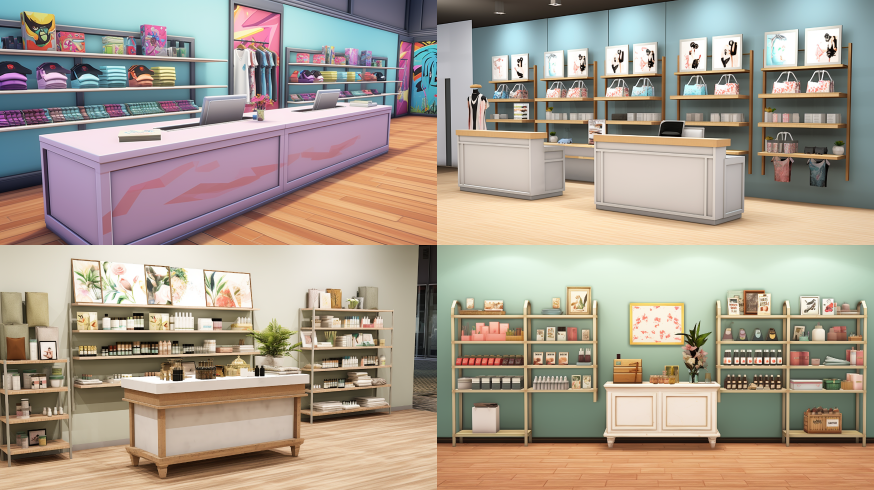 Midjourney Bot 更新时间:2023-09-01 10:04There are 2 checkout counters, 2 fitting rooms, double the middle shelf, and add light box paintings on the wall shelf --ar 16:9 --style raw --v 5.2