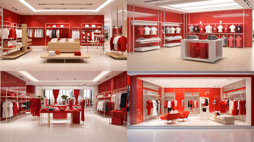 Midjourney Bot 更新时间:2023-09-01 09:59200 square meter clothing store with models in the kitchen window, available for both men and women's clothing, 4 fitting rooms, minimalist decoration style, indoor perspective, store name all season clothing store, logo in red --ar 16:9 --style raw --v 5.2
