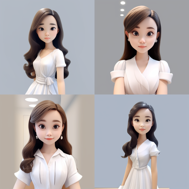 Midjourney Bot 更新时间:2023-09-01 10:07Cute cartoon style, Disney 3D avatar wearing a simple white dress, elegant girl, delicate gloss, best picture quality, clean background, soft focus. --ar 1:1 --v 5.2 --style raw