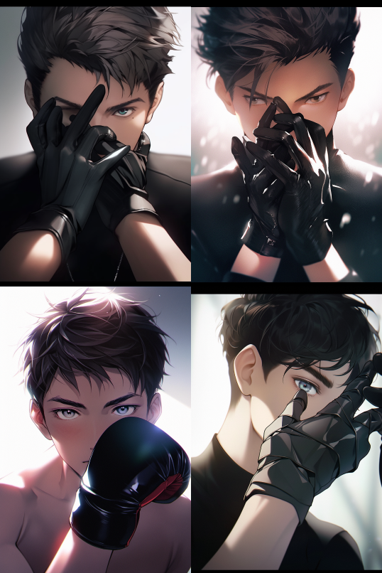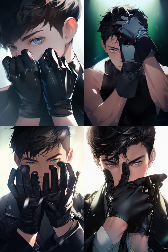 Midjourney Bot 更新时间:2023-09-01 00:50hands close-up, a 22 years old young handsome manly male is wearing black_gloves, crew cut, Makoto Shinkai, in the style of 2D Japanese Anime, beautiful cinematic lighting, Official Art,Pixiv Fanbox, Digital Art, Epic Portraiture, Ultra Detailed, 32K Resolution, Vibrant Colors, Vivid Colors, Bright Colors, Masterpiece, Best Quality, Post Processing.. --s 40 --ar 2:3 --style original --niji 5