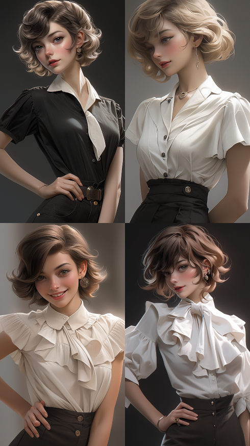 Midjourney Bot 更新时间:2023-09-01 00:56A very beautiful girl, with fair and translucent skin, delicate portraits, exquisite facial features, jewel like eyes, a smile on her face, short hair, wearing a white button short sleeved collar shirt, black buttocks skirt, necklace, bracelet, lively and cute. (Human photography) surreal, realistic, extreme details, realistic movie lighting, facial features, light makeup face, girlish feeling --ar 9:16 --style expressive --niji 5 --s 750