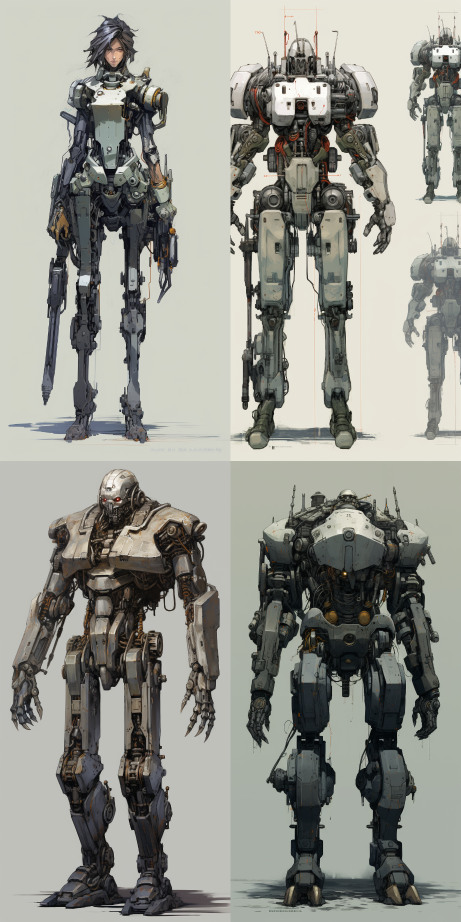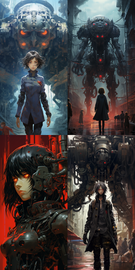 Midjourney Bot 更新时间:2023-09-01 00:55Draw a humanoid mecha similar to those in The Matrix, in 16K high resolution. Inspired by Spirited Away, Tales from Earthsea, Space Battleship Yamato, Howl's Moving Castle, and Tsutomu Nihei. --ar 1:2 --v 5.2