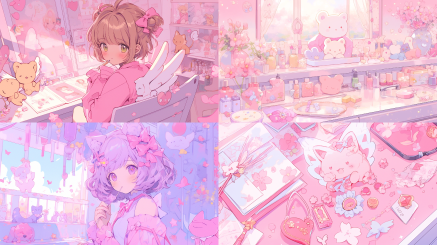 Midjourney Bot 更新时间:2023-09-01 01:09the picture is done in pink, in the style of Card Captor Sakura manga style, KINOMOTO SAKURA,blink-and-you-miss-it detail,kawaii aesthetic, high-keyed palette,precisionist art ,Dream colors,low saturation ,Pastel,oil painting ,Hello kitty ,purple and yellow tones --ar 16:9 --niji 5