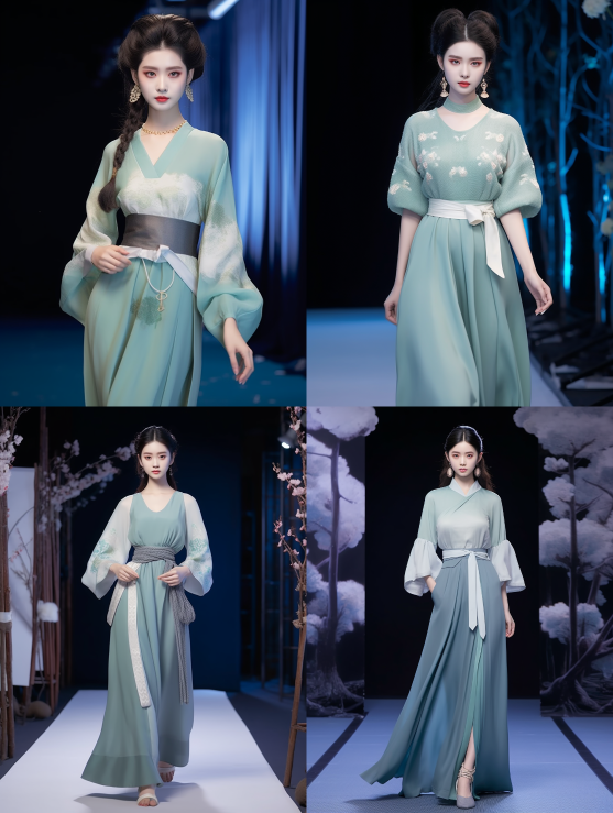 Midjourney Bot 更新时间:2023-08-31 22:55Ancient long gown and dress, made of knitted fabric, woolen dress, belt, Chinese style, Korean model, exquisite face, double eyelids, big eyes, and background for runway show.,full lipsheavy bright makeupnatural volumetric,delicate skin texture,Best quality,UHD,Light-Green,hair ribbon,black hair,hair bun --ar 3:4 --style raw --v 5.2