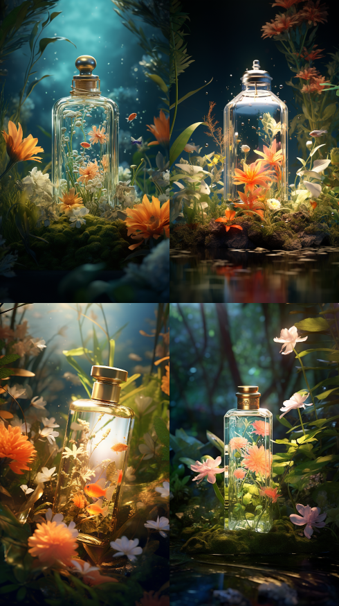 Midjourney Bot 更新时间:2023-08-31 22:36Rembrandt light, atmospheric lighting , A bottle of perfume, There is a tropical fish inside, volumetric lighting, Flowers, petals, grass, plants, leaves, vine entanglements, water droplets, forests, ray tracing, 3d art, depth of field, surreal, octane rendering, c4d, complex details. --ar 9:16 --v 5.2