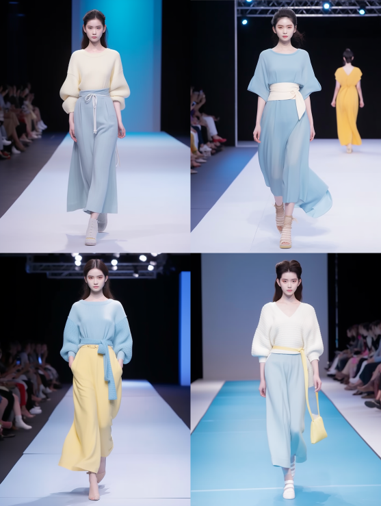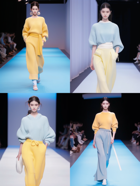 Midjourney Bot 更新时间:2023-08-31 22:39Chinese style, 2023 Fashion Week, Chinese style design, cross necked, pullover dress, straight tube style, knitted sweater, wool dress, light yellow, seam and grid technology, belt, Korean female model, exquisite face, double eyelids, and background of runway show. Full size photos, full lip color, bright makeup, natural volume, delicate skin texture, best quality, ultra high definition, hair bands, black hair, short ponytail --iw 2 --ar 3:4 --style raw --v 5.2