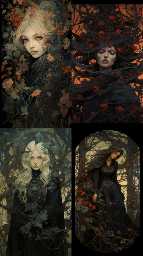 Midjourney Bot 更新时间:2023-08-31 21:48A dark witch with insightful eyes,Sam Guay,Enchanted garden --ar 9:16 --style raw --v 5.2