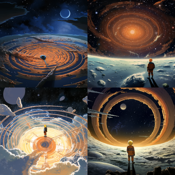 Midjourney Bot 更新时间:2023-08-31 22:04The scene of Naruto Uzumaki, the Golden Spiral, in space in Naruto. --ar 1:1 --v 5.2 --style raw