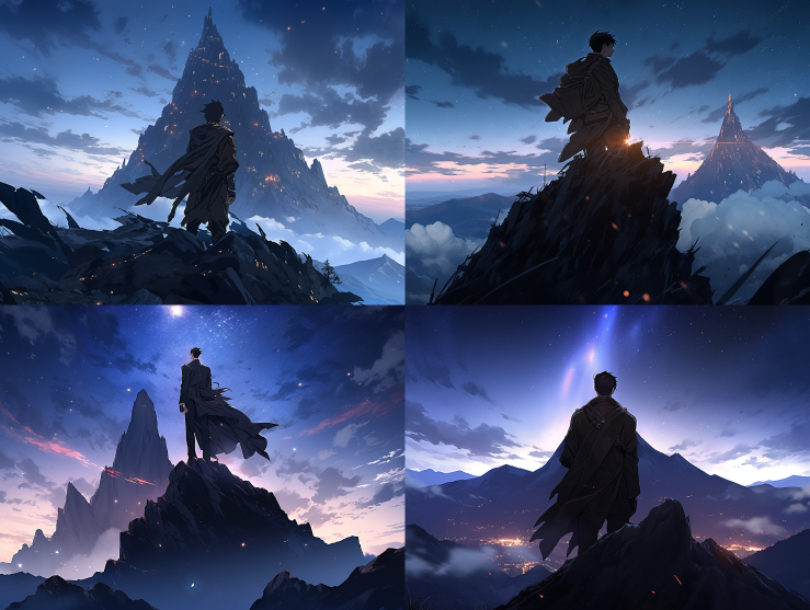 Midjourney Bot 更新时间:2023-08-31 21:45A young martial arts master standing on top of a lonely mountain peak, with a strong and determined posture and a deep gaze, surrounded by howling wind in the dark night, the silhouette of the mountain peak faintly visible, by Manhua ,16K,high resolution,UHD,Aldnoah.Zero --ar 4:3 --niji 5