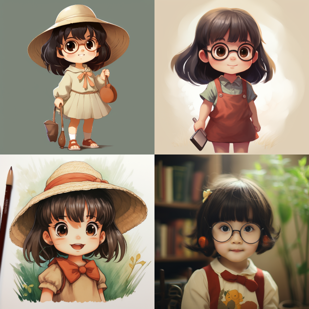 Midjourney Bot 更新时间:2023-08-31 21:58The little girl with the art style of "Spirited Away". --ar 1:1 --v 5.2 --style raw