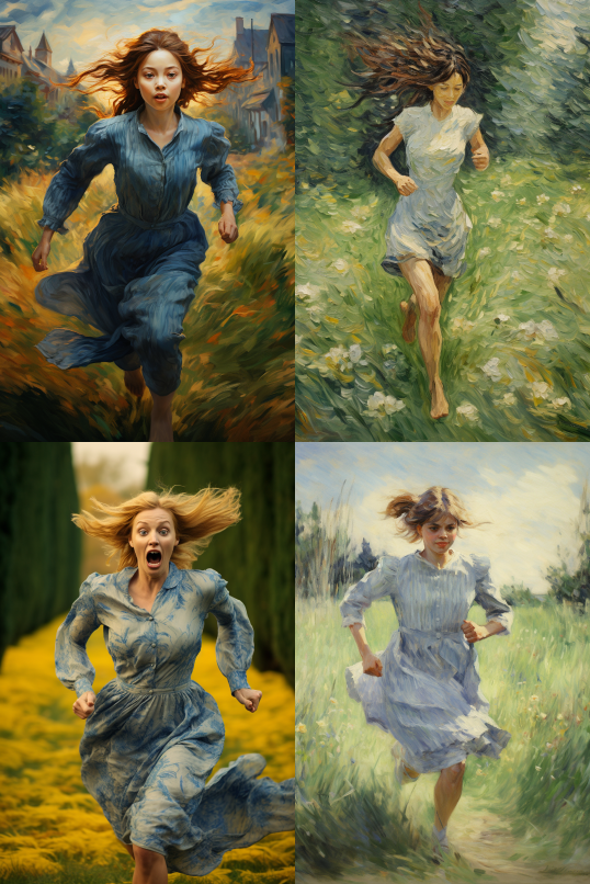Midjourney Bot 更新时间:2023-08-31 20:42Van Gogh's style, girl, lawn, running --s 180 --ar 2:3 --style raw --v 5.2