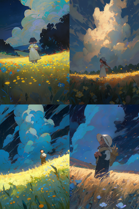 Midjourney Bot 更新时间:2023-08-31 20:35Van Gogh's painting style, little girl looking up at the starry sky in the field --s 180 --ar 2:3 --style expressive --niji 5
