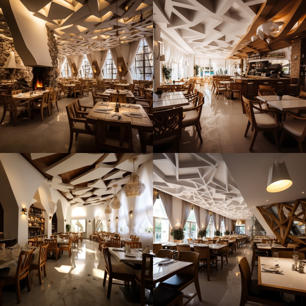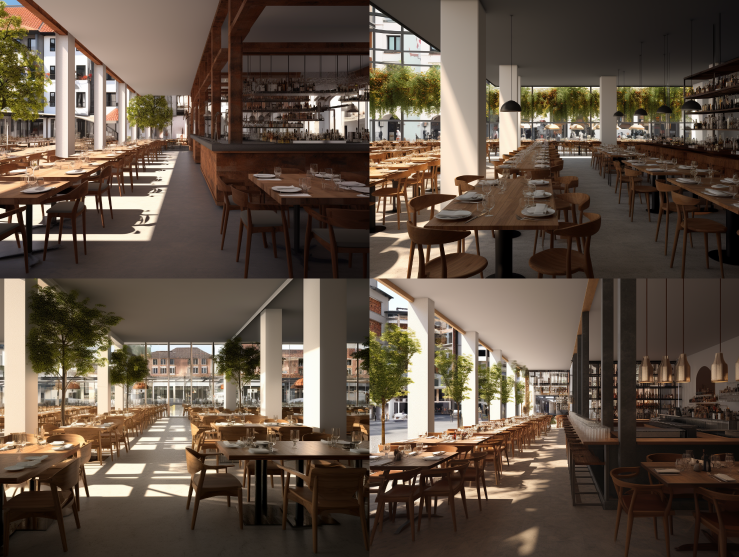 Midjourney Bot 更新时间:2023-08-31 20:431️⃣ a 3d rendering of an industrial style restaurant, in the style of naturalistic shadows, tamron 24mm f/2.8 di iii osd m1:2, golden light, [georg jensen](https://goo.gl/search?artist%20georg%20jensen), [sana takeda](https://goo.gl/search?artist%20sana%20takeda), soft and airy compositions, the vancouver school 2️⃣ a restaurant with a large dining area and window, in the style of vray tracing, [mikko lagerstedt](https://goo.gl/search?artist%20mikko%20lagerstedt), golden light, barbizon school 3️⃣ 3d model of restaurant, dining tables and chairs, in the style of juxtaposition of light and shadow, tokina at-x 11-16mm f/2.8 pro dx ii, norwegian nature, light gold and light amber, larme kei, ray tracing, symmetrical asymmetry 4️⃣ restaurant furniture modern 3d restaurant interior design, in the style of vray tracing, light-filled compositions, unreal engine 5, norwegian nature, golden light, brutalism, tabletop photography --ar 4:3 --style raw --v 5.2 --s 250