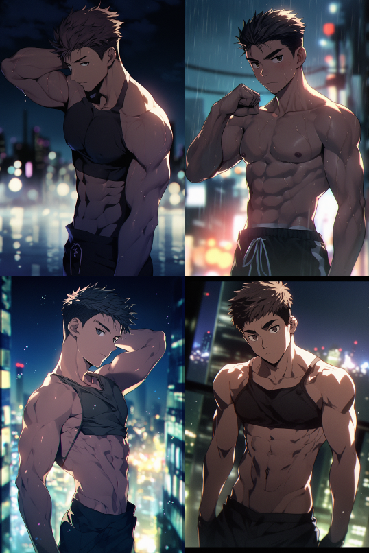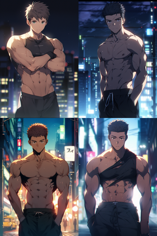 Midjourney Bot 更新时间:2023-08-31 18:36Frontal view,medium full shot,a 25 years old young handsome male,crew cut,perfect face,trim physique,athletic build,pectorals and abdominals,topless,no shirts,without shirts,none shirts,putting both hands by sides,bright night,city background,Makoto Shinkai,in the style of 2D Japanese Anime,beautiful cinematic lighting,Official Art,Pixiv Fanbox,Digital Art,Epic Portraiture,Ultra Detailed,32K Resolution,Vibrant Colors,Vivid Colors,Bright Colors,Masterpiece,Best Quality,Post Processing. --ar 2:3 --style original --s 110 --niji 5