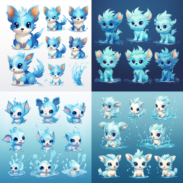 Midjourney Bot 更新时间:2023-08-31 18:45Water Elemental Puppy, game assets, character design, full body character design, character design with multiple poses. --ar 1:1 --style raw --v 5.2