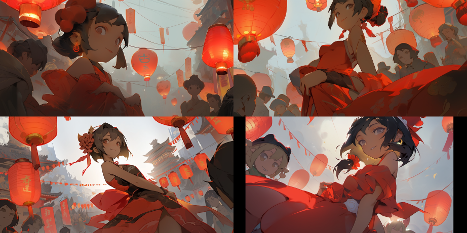 Midjourney Bot 更新时间:2023-08-31 18:41A little girl in a red dress looking back at the lantern party, with only the little girl in the poster, and no debris except for Kong Mingdeng --weird 123 --s 138 --c 22 --ar 2:1 --style expressive --niji 5