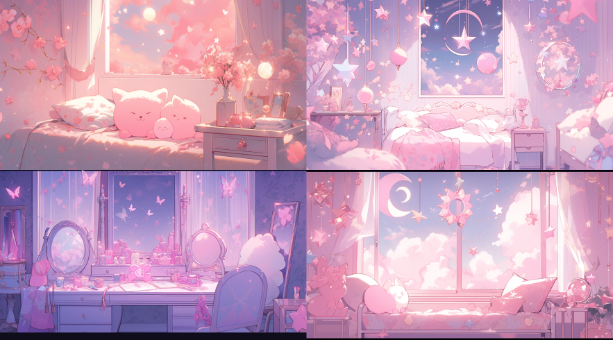 Midjourney Bot 更新时间:2023-08-31 18:40a girl,the tone is done in pink, in the style of sailor moon manga style, blink-and-you-miss-it detail,kawaii aesthetic, high-keyed palette, little star,precisionist art ,Dream colors,low saturation ,bedroom ,bedroom,Sailor Moon::2 ,bedroom,Sailor Moon::2 ,bedroom,Sailor Moon::2 --s 233 --ar 128:71 --niji 5