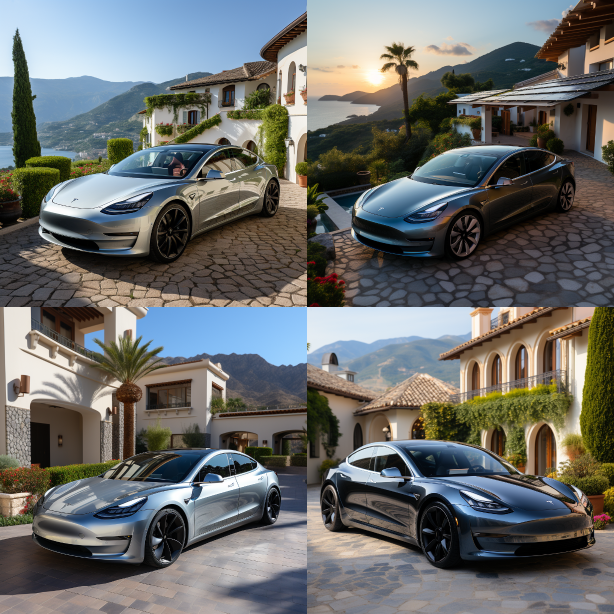 Midjourney Bot 更新时间:2023-08-31 18:43Tesla model3 solar powered car image parked in villa image --ar 1:1 --style raw --v 5.2 --s 750