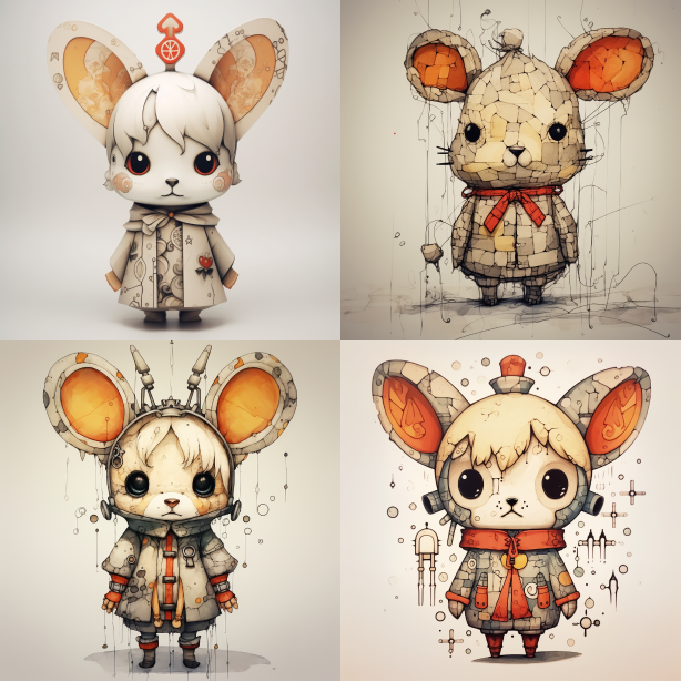 Midjourney Bot 更新时间:2023-08-31 17:43A rabbit wearing a can; The overall shape and lines are simple; 2D carton plane; Fairy tale style, --s 216 --c 8 --ar 1:1 --style raw --v 5.2