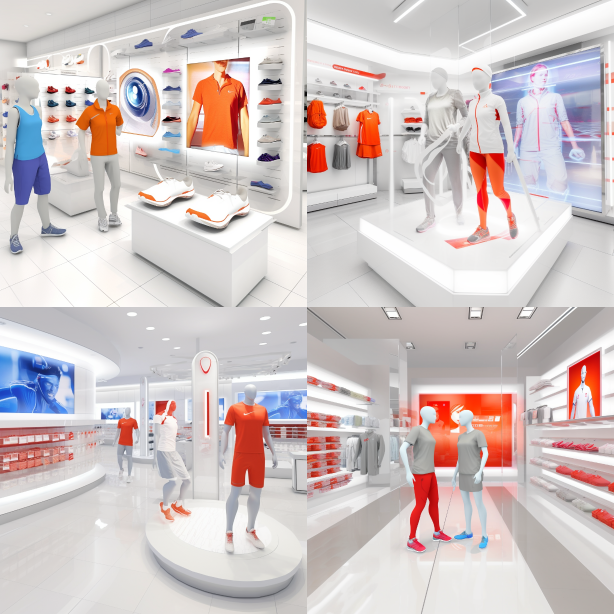 Midjourney Bot 更新时间:2023-08-31 17:40Large high-tech sports store made of simple high-tech, walking in the form of a shopping mallModern Nike store, interior design 8k, wide-angle lens, bright and layered suspended ceiling, surface of white latex paint material with strip lights, white floor, metal wall, metal frame clothing shoe wall and design sense model dp point combination, looking inside the store from the front perspective of the outside door --no Black ceiling, black atmosphere --s 0 --ar 1:1 --style raw --v 5.2