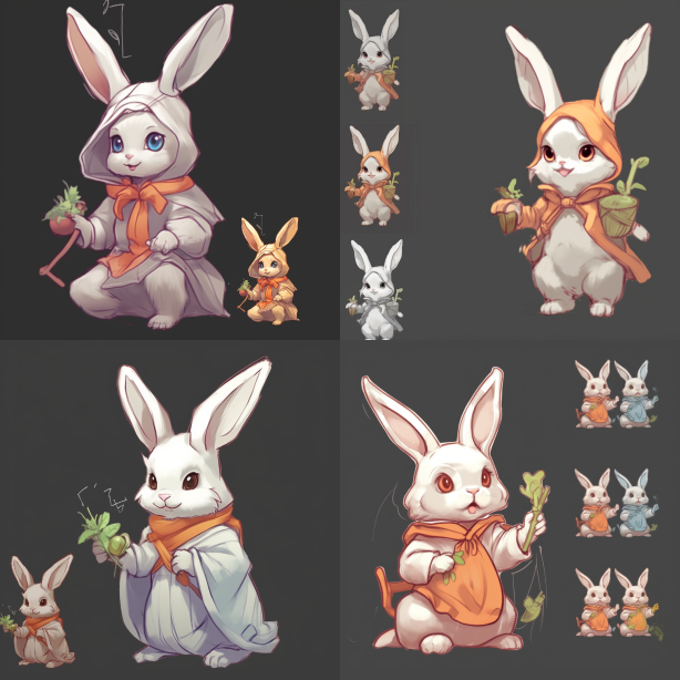 Midjourney Bot 更新时间:2023-08-31 17:45Rabbit Elf Holding Carrots,character design,game assets,full body character design,character design multiple poses --iw 2 --ar 1:1 --style raw --v 5.2