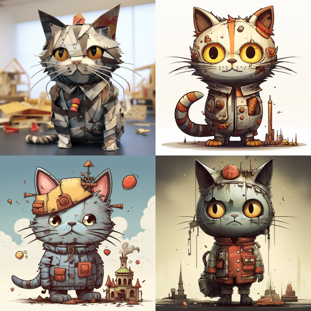Midjourney Bot 更新时间:2023-08-31 17:44A cat wearing a can; The overall shape and lines are simple; 2D carton plane; Fairy tale style, --s 216 --c 8 --ar 1:1 --style raw --v 5.2