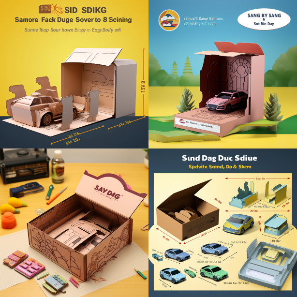 Midjourney Bot 更新时间:2023-08-31 17:38Now we need to design a color packaging box with dimensions of 27.5 centimeters in length, 6.5 centimeters in width, and 6.5 centimeters in height. The product name is: Car sunshade umbrella, and we need you to provide 3D and 2D tile drawings --no umbrella --ar 1:1 --style raw --v 5.2