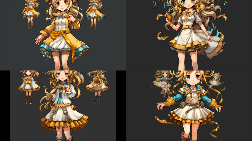 Midjourney Bot 更新时间:2023-08-31 17:34Soft,character design,game assets,full body character design,character design multiple poses --iw 2 --ar 16:9 --style raw --v 5.2 --s 750