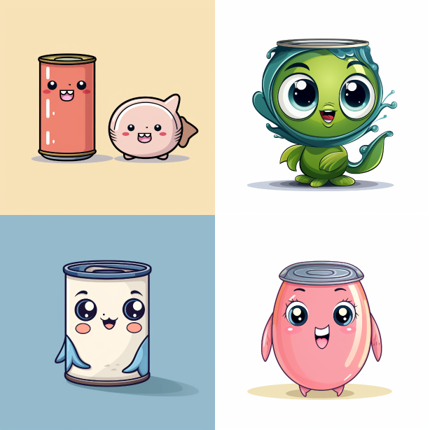 Midjourney Bot 更新时间:2023-08-31 17:36Cartoon canned tuna, 2D flat, anthropomorphic form, fairy tale style, simple pen, --s 206 --c 8 --ar 1:1 --style raw --v 5.2