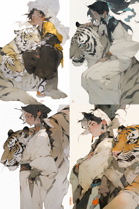 Midjourney Bot 更新时间:2023-08-31 17:31An ambient Chinese young boy, solo, eating Chinese costs, next to White Tiger, a Chinese ink painting, art by Qiu Ying, Zhang Daqing, yellow and white color, bright --s 750 --uplight --ar 2:3 --style expressive --niji 5