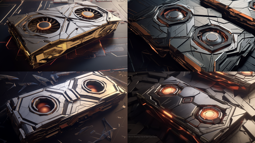 Midjourney Bot 更新时间:2023-08-31 17:20Design a computer graphics card with a metallic appearance,3D rendering,photorealistic,hyper detailed,Retro-futurism,octane rendering,UHD,Best quality,depth of field,Starcraft --ar 16:9 --style raw --v 5.2