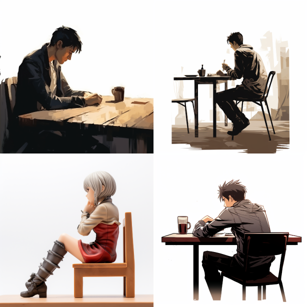 Midjourney Bot 更新时间:2023-08-31 17:10Side view of the protagonist sitting at the table --ar 1:1 --style raw --v 5.2