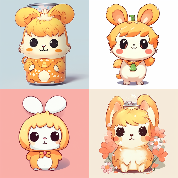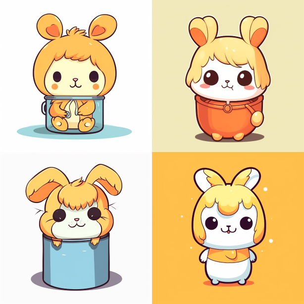 Midjourney Bot 更新时间:2023-08-31 17:17Rabbit in a can, easy to pull can shaped body, simple stroke, 2D, flat, fairy tale style, with over 60% head proportion --s 216 --ar 1:1 --style raw --v 5.2