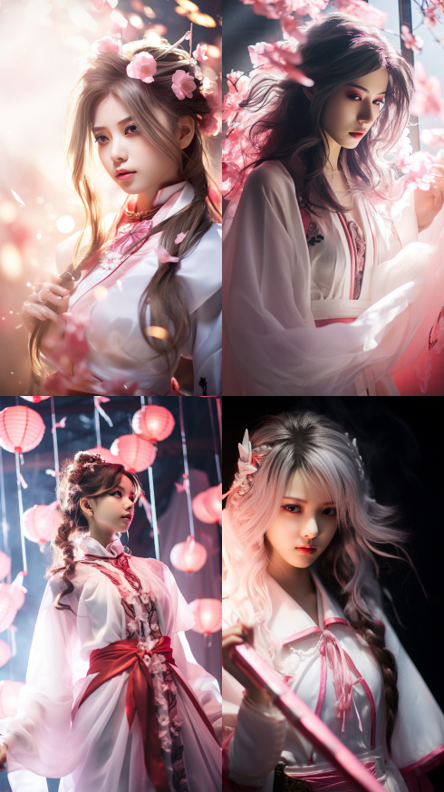 Midjourney Bot 更新时间:2023-08-31 17:17Chinese woman wearing complex white and pink clothes, cosplay, fantasy background, light and shadow effects, close-up --ar 9:16 --style raw --v 5.2