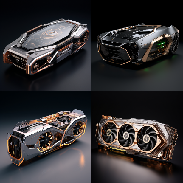 Midjourney Bot 更新时间:2023-08-31 17:07Design a computer graphics card with a Lamborghini sports car exterior style, three cooling fans, a combination of metal and PC transparent materials, a metal cover, fine curved details, and a fully wrapped cover design --ar 1:1 --style raw --v 5.2