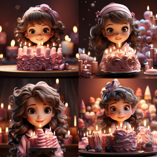 Midjourney Bot 更新时间:2023-08-31 17:193D rendering: A cute little girl holding a birthday cake, with a pink background, highlighting a sweet and happy feeling. --ar 1:1 --style raw --v 5.2 --s 750