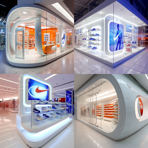 Midjourney Bot 更新时间:2023-08-31 17:19Large high tech sports store made of simple high tech, walking in the form of a shopping mall Modern Nike store, interior design 8k, wide angle lens, bright and layered suspended ceiling, ceiling surface is white latex paint material with strip lights, white floor, metal wall, metal frame covering shoe wall and design sense model dp point combination, Looking from outside the store to the inside of the store --no Black ceiling, black atmosphere --s 110 --ar 1:1 --style raw --v 5.2
