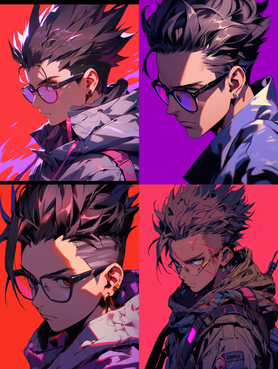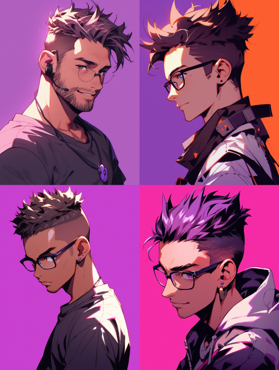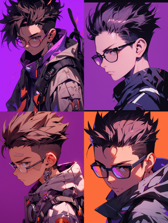 Midjourney Bot 更新时间:2023-08-31 16:28A handheld 25-year old man with brown faux hawk hair, glasses, IT grooming, smiling, Extremely handheld face, looking at the viewer, rich details, wait shot, portal, upper body of the character, flat illustration, minimalism, by Aka Outwork style, solid purple background without limitations --s 1000 --ar 3:4 --niji 5