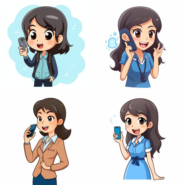 Midjourney Bot 更新时间:2023-08-31 16:21A lady holding a smartphone and talking on the phone, against a pure white background, depicted in a cartoon illustration style, and the character is of Asian ethnicity. --ar 1:1 --style raw --v 5.2