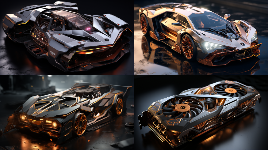Midjourney Bot 更新时间:2023-08-31 16:24Design a three fan computer graphics card with a Lamborghini sports car exterior style, combining metal and transparent materials, a metal cover, fine curved details, and a fully wrapped cover design,photorealistic,hyper detailed,Best quality,UHD,3D rendering,Futurism --ar 16:9 --style raw --v 5.2 --s 250