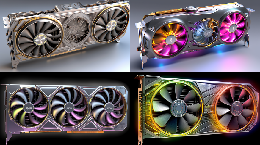 Midjourney Bot 更新时间:2023-08-31 16:22Please generate a three fan graphics card based on the sketch, with a metal surface, Gigabyte graphics card, Asus graphics card, NVIDIA graphics card, and a premium feel,,Futurism,detailed intricate,documentary photography,3D rendering,Cinema4D,3D model,Blender,photorealistic,Retro-futurism,Dream colors,studio light,Best quality,UHD,cinematic style,blue and yellow tones,purple and black tones,yellow and black tone,blue and green tones --c 10 --iw 2 --ar 16:9 --style raw --v 5.1 --s 750