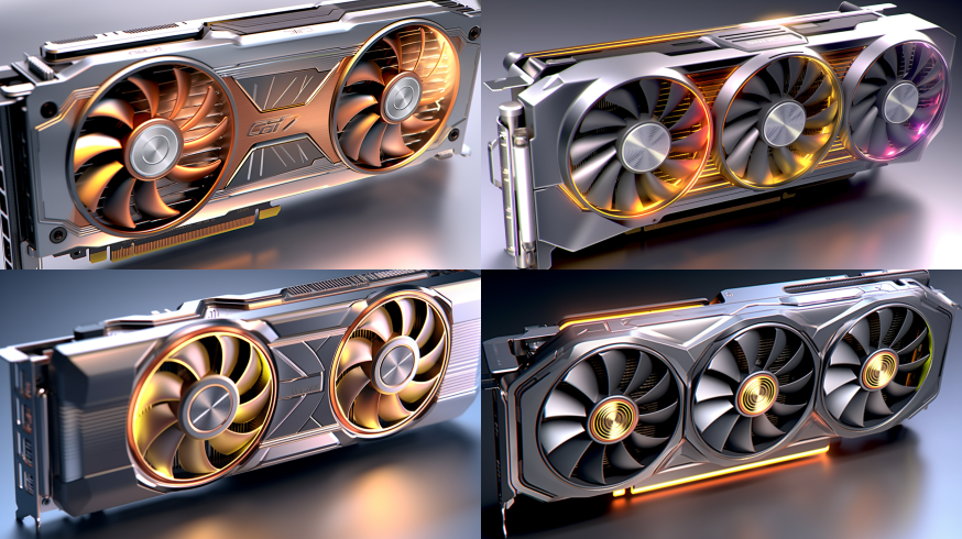 Midjourney Bot 更新时间:2023-08-31 16:22Please generate a three fan graphics card based on the sketch, with a metal surface, Gigabyte graphics card, Asus graphics card, NVIDIA graphics card, and a premium feel,,Futurism,detailed intricate,documentary photography,3D rendering,Cinema4D,3D model,Blender,photorealistic,Retro-futurism,Dream colors,studio light,Best quality,UHD,cinematic style,blue and yellow tones,purple and black tones,yellow and black tone,blue and green tones --c 10 --iw 1.25 --ar 16:9 --v 5.0