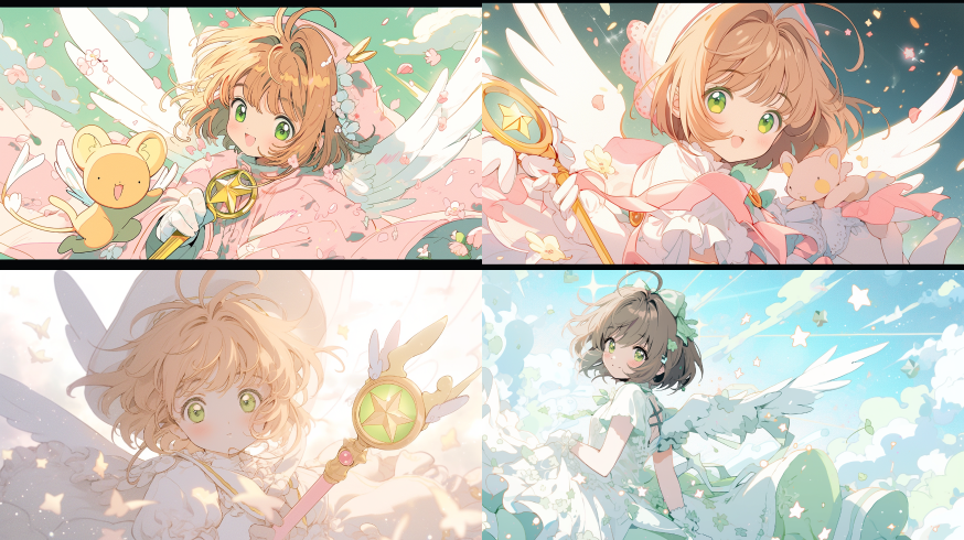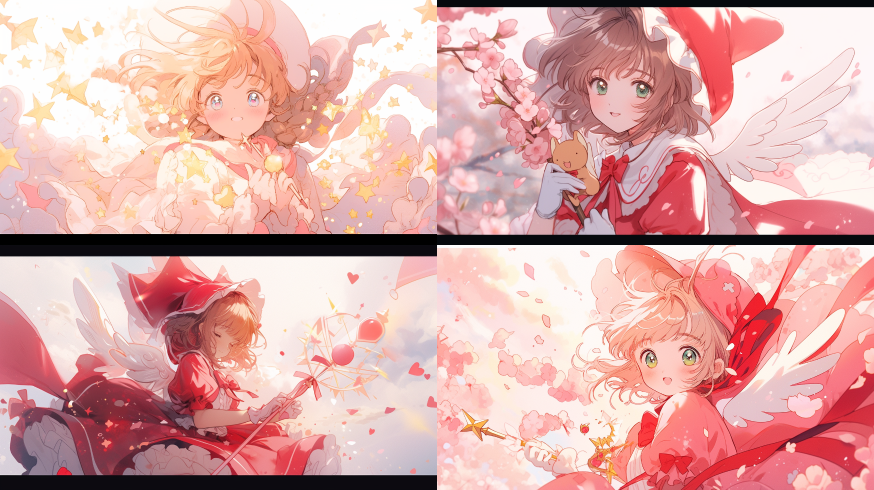 Midjourney Bot 更新时间:2023-08-31 14:57the picture is done in white and red, in the style of Card Captor Sakura manga style, blink-and-you-miss-it detail,kawaii aesthetic, high-keyed palette, little star,precisionist art ,Dream colors,low saturation ,wizard hat --ar 16:9 --niji 5