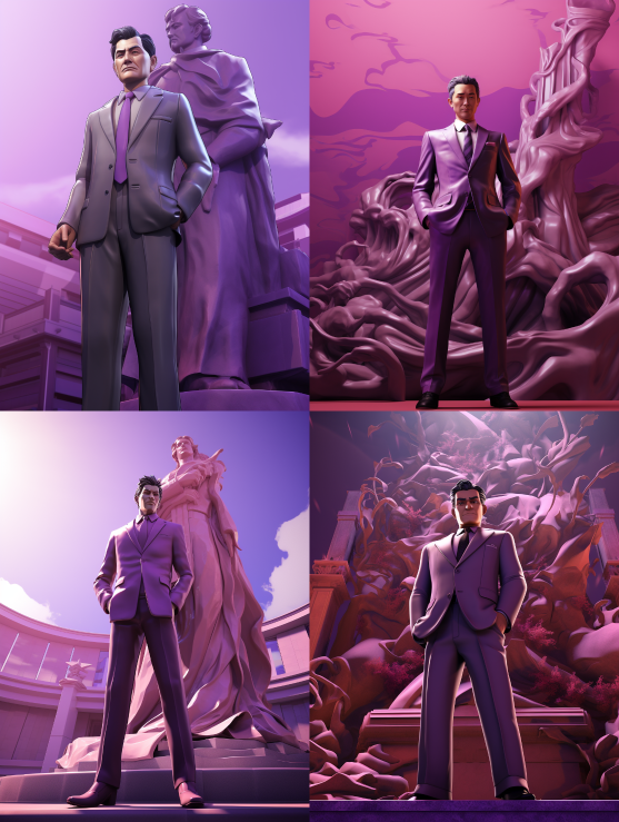 Midjourney Bot 更新时间:2023-08-31 14:573D texture, comic-style graphics. A middle-aged Chinese man wearing a suit, exuding an elegant and scholarly aura. Behind him, there is a purple shadow of a deity statue, which is even larger than a skyscraper. --ar 3:4 --v 5.2 --style raw
